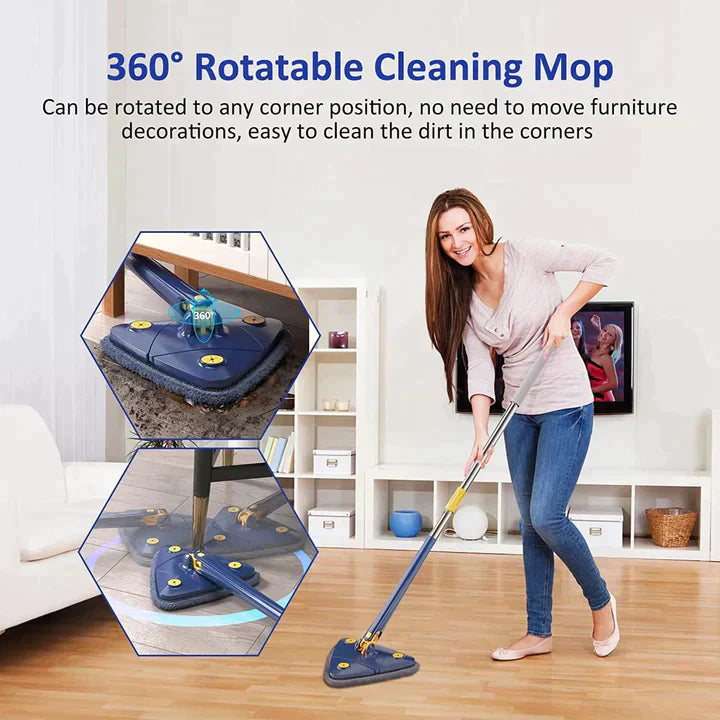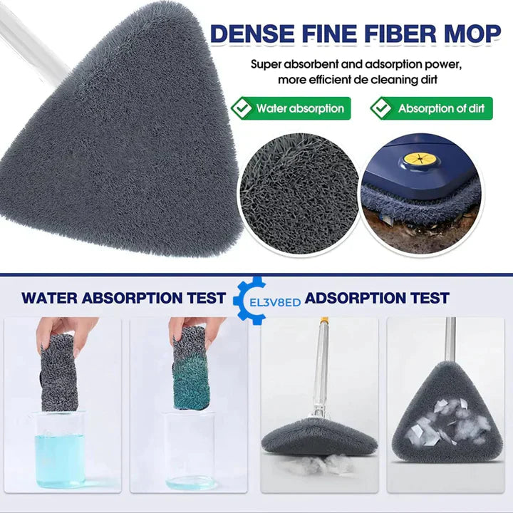 The triangle mop head design, allows for our mop to clean every single corner or crevice in your home. Along with the touch free squeezing function to wring out the mop with ease every time. Leave no stone un-turned, and no dirt uncleaned!