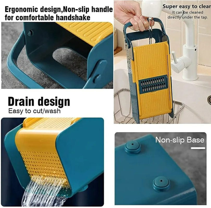Smart multipurpose design: It includes multiple pieces so you will have everything you need to prepare your meals quicker, easier and without mess. It comes with 5 practical interchangeable blades, a base container to hold the sliced vegetables and a drainer bin to wash and drain the slices.